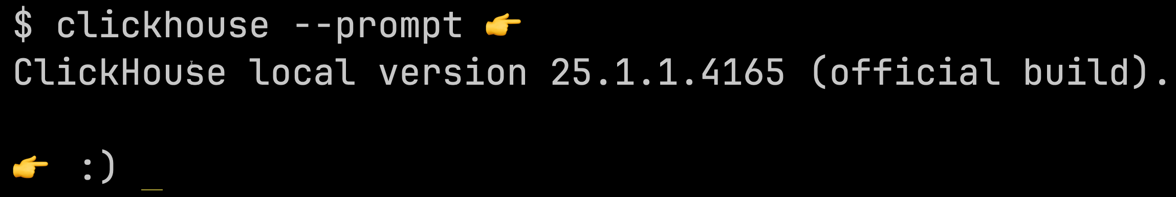 If you don't like how clickhouse client and clickhouse-local display the prompt in your terminal window, it is possible to change it to add a prefix.