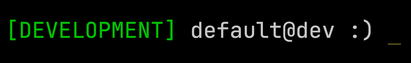 <prompt>\e[32m[DEVELOPMENT]\e[0m {user}@dev</prompt>